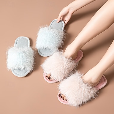 Pantufas de pelúcia com bico aberto para mulheres, pantufas macias e felpudas para uso interno em casa, estilo europeu, para adolescentes.