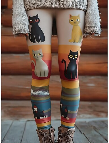 Mulheres Calças Leggings Leggings aconchegantes Roupa de rua Casual Comprimento total Cintura Alta Gato Listrado Cintura elástica Imprimir Respirabilidade Confortável Com Stretch Férias Rua Roupa