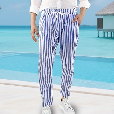 Homens Calças de linho Calças Calça verão Calças de praia Bolsos Com Cordão Cintura elástica Listrado Conforto Respirável Férias Diário Feriado Havaiana Boho Preto Vermelho