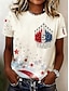 Dia da Independência Americana Mulheres Camiseta Imprimir Gráfico Bandeira Letra Vintage Moda à moda Manga Curta Gola Redonda Tops regulares Casual Diário Final de semana Azul Vermelho Bege Verão