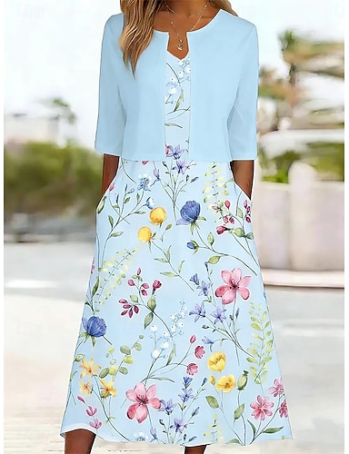 Linha A Até o Tornozelo Vestidos de cocktail Elegante Floral Manga 3/4 Decote V Casamento Formal Jacquard com Estampa floral Pregas