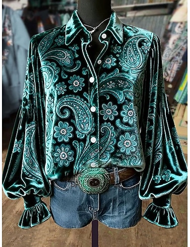 Mulheres Camisa Social Floral Gráfico Estampado Cashemere Elegante à moda Moderno Manga Longa Colarinho de Camisa Tops regulares Diário Trabalho Traje de festa para noite Azul Preto Vermelho Verão