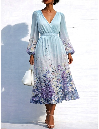Mulheres Vestido midi vestido plissado Vestido Bodycon Vestido justo e evasê Aniversário Casual Formal Escritório Encontro Normal Floral Gráfico Manga Longa Decote V Azul Verde Claro Rosa Roxo Claro