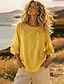 Mulheres Blusa Tecido Casual Manga 3/4 Gola Redonda Tops regulares Diário Feriado Para Noite Azul Amarelo Rosa Cinzento Verão Primavera