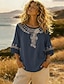 Mulheres Camisa Social Blusa Linho de algodão sintético Bordado Floral Ativo Vintage à moda Manga Longa Gola Redonda Tops regulares Diário Feriado Para Noite Amarelo Rosa Azul Marinha Verde Verão