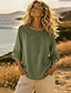 Mulheres Camisas de algodão e linho Blusa Conjuntos de calças Manga Longa Gola Redonda Côr Sólida Ativo Básico Ao ar livre Para Noite Rosa Verde Tropa Bege Verão Normal