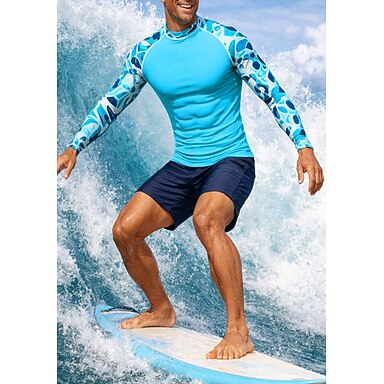 Homens Anti Atrito Camisa de Natação Geométrica Gradiente Abstrato UPF50+ Proteção UV Secagem Rápida Manga Longa Roupa de Banho Anti Atrito Surfe Canoagem Praia Verão