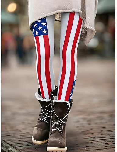 Leggings femininas para o Dia da Independência dos EUA, leggings confortáveis, leggings casuais para férias, calças compridas de cintura alta com estampa da bandeira americana, confortáveis, elásticas, casuais para uso diário, férias, azuis, primavera, ou