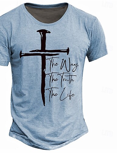 Camiseta T Shirt Jesus da Bíblia para Homens - Camisetas de Manga Curta - Camiseta Estampa 3D com Gola Redonda - Designer Casual para Festas e Feriados Azul Claro Preto Branco Primavera e Verão