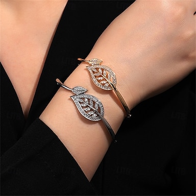 Zircônia Cubica Incompatível Formato de Folha Elegante Personalizada Na moda cromada Pulseira de jóias Prata / Dourado Para Casamento Festa Noivado Baile de Formatura