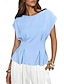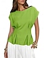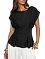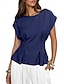 Mulheres Camisa Social Blusa Franzido Tecido à moda Clássico Moderno Manga Curta Gola Redonda Tops regulares Diário Feriado Para Noite Azul Preto Branco Vinho Verde Verão Primavera