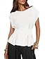 Mulheres Camisa Social Camisas de algodão e linho Blusa Linho de algodão sintético Frufru Tecido à moda Clássico Moderno Manga Curta Gola Redonda Tops regulares Diário Feriado Para Noite Preto Branco