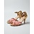 Sandálias femininas de salto alto com tiras douradas e rosa – sandálias elegantes de bico aberto com tira no tornozelo para uso diário e casual.