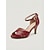 Sapatos de salto alto femininos vintage vermelho vinho dos anos 50 com bico aberto - sapatos retrô de salto alto com tira ajustável no tornozelo, ideais para festas de coquetel, eventos formais e trabalho.