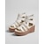 Sandálias gladiadoras brancas femininas com salto romano – design com tiras em formato de gaiola, tira no tornozelo com zíper na parte de trás, calçado casual de verão para férias, praia e viagens.