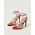 Sapatos de salto alto femininos de plataforma de cetim vermelho, saltos altos de festa de Natal com tira no tornozelo para celebrações de feriados &roupas festivas