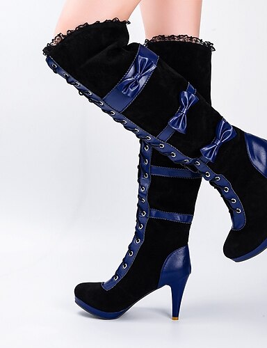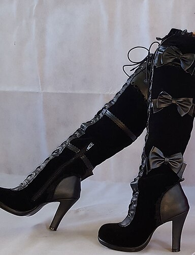 Botas femininas de renda preta inspiradas no estilo vitoriano da década de 1890, com salto alto, laço e detalhes, para reuniões vintage elegantes e festas temáticas &eventos de Halloween