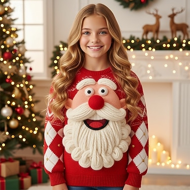 Natal Para Meninas 3D Papai Noel Suéter de Natal Feio presente de Natal Suéter Manga Longa Impressão 3D Outono Inverno Moda Festa Infantil 4-12 anos Gola Redonda Ao ar livre Diário Normal