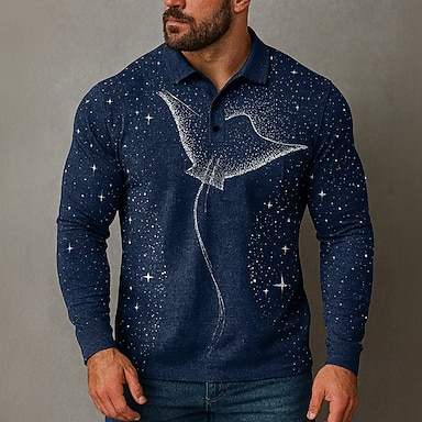 Homens Animal Modelado Pólo Manga Longa Camisas polo Lapela Casual Ao ar livre Rua Roupa Esportiva Roupa Diária Impressão 3D Botões Primavera Outono Inverno Preto Azul Roxo