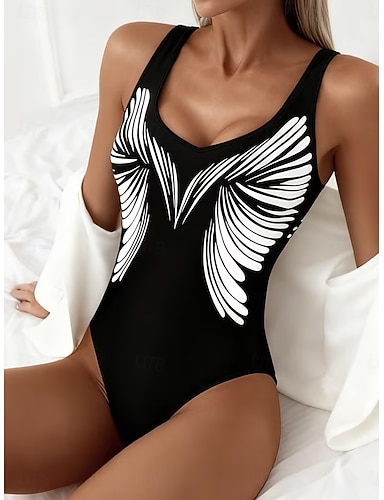 Mulheres Roupa de Banho Uma pedaço Slip roupa de banho Férias Moda Gráfico Geométrica Decote Redondo Sem Manga Fatos de banho