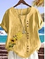 Mulheres Blusa Botões Imprimir Floral Gráfico Vintage Tropical à moda Manga Curta Gola Redonda Tops regulares Feriado Azul Amarelo Verde Verão Primavera