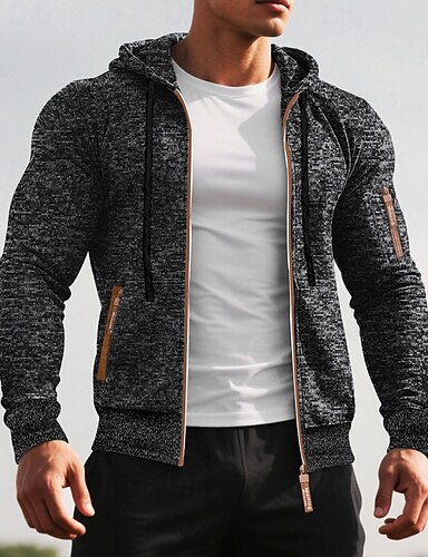 Homens Camiseta T-shirt Camisa de manga longa Manga Longa Com Capuz Primavera & Outono Todas as Estações Côr Sólida Moda Designer Básico Cordões Bolso Com Zíper Férias Rua Casual Cinzento Escuro
