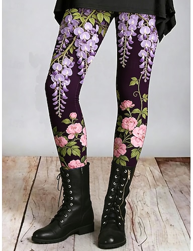 Mulheres Leggings Leggings aconchegantes Férias Casual Comprimento total Cintura Alta Floral Gráfico Estampado Conforto Confortável Com Stretch Casual Diário Férias Roxo Verão Primavera Outono Fino