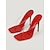 Sandálias femininas vermelhas de salto agulha com tira transparente – saltos sensuais para festas de coquetel