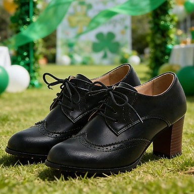 Sapatos de Salto Baixo com Bico Fino Vintage PU para Mulheres em Preto Vermelho e Marrom