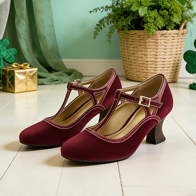 Saltos Platform Vermelhos de Couro Sintético Brilhante para Mulheres com Fivelas Duplas de Sapatos Mary Jane – Perfeito para Carnavais Paradas e Celebrações Festivais