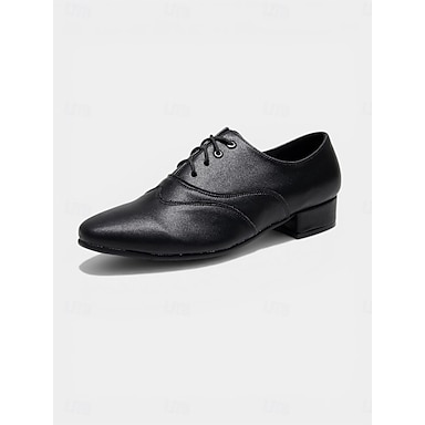 Sapatos de dança de salão masculinos pretos, com cadarço e sola macia, ideais para praticar danças latinas, tango e salsa. &apresentação em recinto fechado
