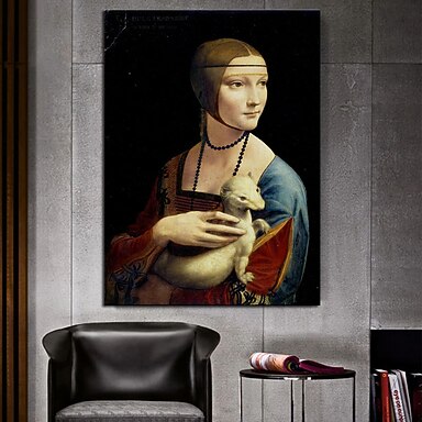 pintura a óleo pintada à mão à mão a senhora com um gato arte da parede abstrato famoso leonardo da vinci escultura decoração para casa decoração lona enrolada sem moldura não esticada