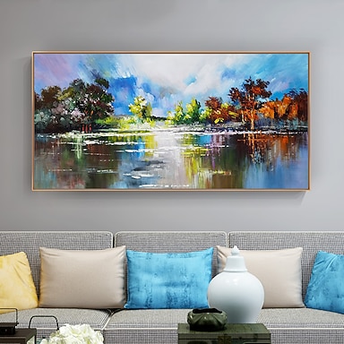 pintura a óleo pintada à mão arte da parede abstrata paisagem azul floresta decoração da casa decoração tela enrolada sem moldura não esticada