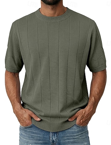 Homens Camiseta de malha canelada T-shirt Manga Curta Gola Redonda Verão Primavera Todas as Estações Tecido Textura Moda Designer Básico Macia Casual Férias Rua Preto Branco Marron Top Tee para Homens