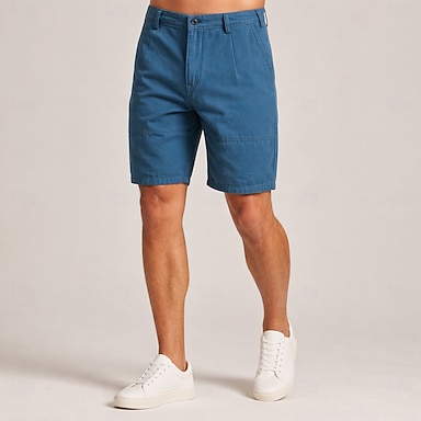 Homens Calção Shorts de trabalho Shorts com lavagem ácida Bolsos Puro Tecido Cor Única Conforto Acima do Joelho Casual Ao ar livre Escritório Moda Roupa de rua Azul Sem Elasticidade