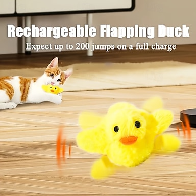 Brinquedo elétrico interativo que imita animais e gatos: pato com asas que batem, ideal para estimular gatos.