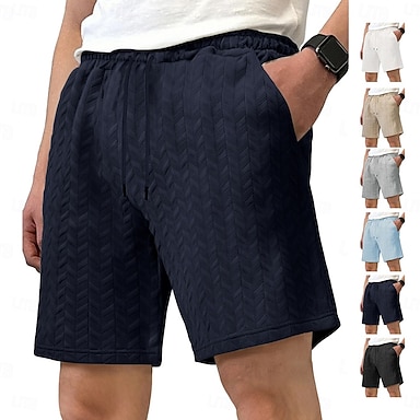 Homens Shorts de verão Shorts de praia Shorts casuais Shorts texturizados Jacquard Com Cordão Cintura elástica Côr Sólida Conforto Comprimento do joelho Diário Ao ar livre Streetwear Férias Moda