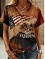 Dia da Independência Americana Mulheres Camiseta Imprimir Gráfico Bandeira americana Vintage à moda Clássico Manga Curta Decote V Tops regulares Diário Castanho Claro Verão Primavera