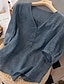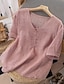Mulheres Blusa Linho de algodão sintético Botões Côr Sólida à moda Casual Manga 3/4 Decote V Tops regulares Diário Azul Branco Rosa Verão Primavera