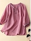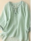 Mulheres Blusa Linho de algodão sintético Botões Côr Sólida à moda Casual Manga 3/4 Gola Redonda Tops regulares Diário Azul Roxo Damasco Verão Primavera