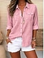 Mulheres Blusa Linho de algodão sintético Bolsos Botões Côr Sólida Diário à moda Casual Manga Longa Colarinho de Camisa Tops regulares Diário Rosa Verão Primavera Outono
