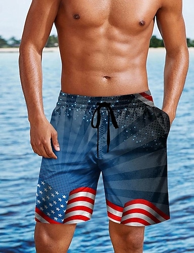 Homens 4 de julho - 250º aniversário dos EUA Bandeira dos EUA Calção Justo de Natação Shorts de Natação Bermuda de Surf Cintura Média Patriótico Ao ar livre Feriado Com Cordão com forro de malha