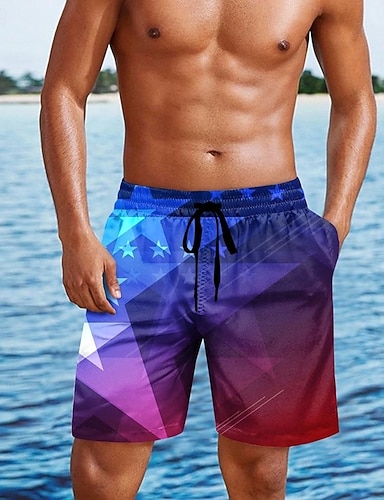 Homens Estampa Geométrica Estrelas Calção Justo de Natação Shorts de Natação Bermuda de Surf Cintura Média Estampa 3D Havaiana Surf Feriado Praia Com Cordão com forro de malha Cintura elástica
