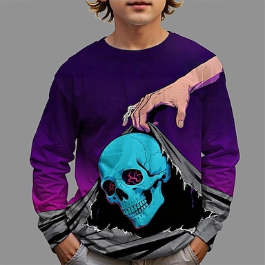 dia das Bruxas Para Meninos 3D Caveiras Camisa Camiseta Manga Longa Primavera Outono Moda Básico Infantil 4-12 anos Gola Redonda Ao ar livre Casual Diário Normal