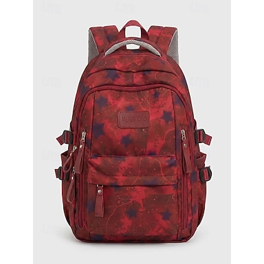 Mochila feminina impermeável de poliéster com estampa de estrelas, grande capacidade, alças ajustáveis, várias cores, bolsa estilosa para escola, viagens, atividades ao ar livre e uso casual no dia a