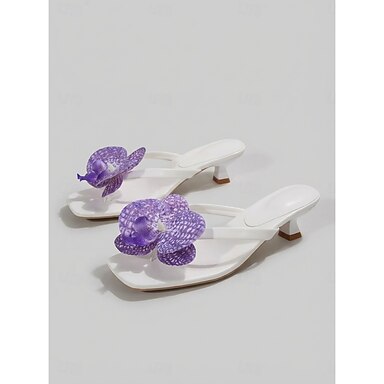 Sandálias femininas românticas brancas com estampa floral - chinelos confortáveis e rasteiros com aplique de flor grande de bolinhas, perfeitos para piscinas de hotéis de luxo e férias na praia.