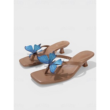 Sandálias femininas boêmias marrons com estampa de borboleta e salto plataforma - chinelos confortáveis com estampa colorida, ideais para piscinas de hotéis de luxo e resorts de praia. &férias de
