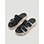 Sandálias femininas pretas de dedo com acabamento ondulado – sandálias casuais de salto baixo para usar na praia durante as férias de verão.