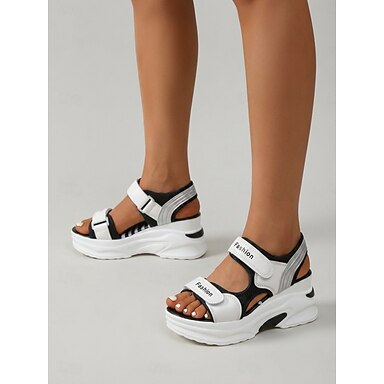 Sandálias esportivas femininas de plataforma com blocos de cores – fecho ajustável &Sandálias robustas com tiras em formato de laço, ideais para caminhadas no parque e viagens. &roupa para uso diário