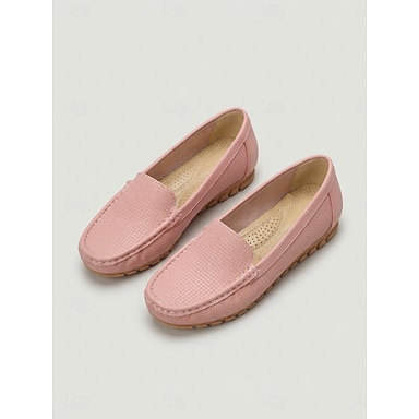 Mocassins femininos rosa texturizados, confortáveis e com sola macia, ideais para caminhadas e férias. &usar o dia todo